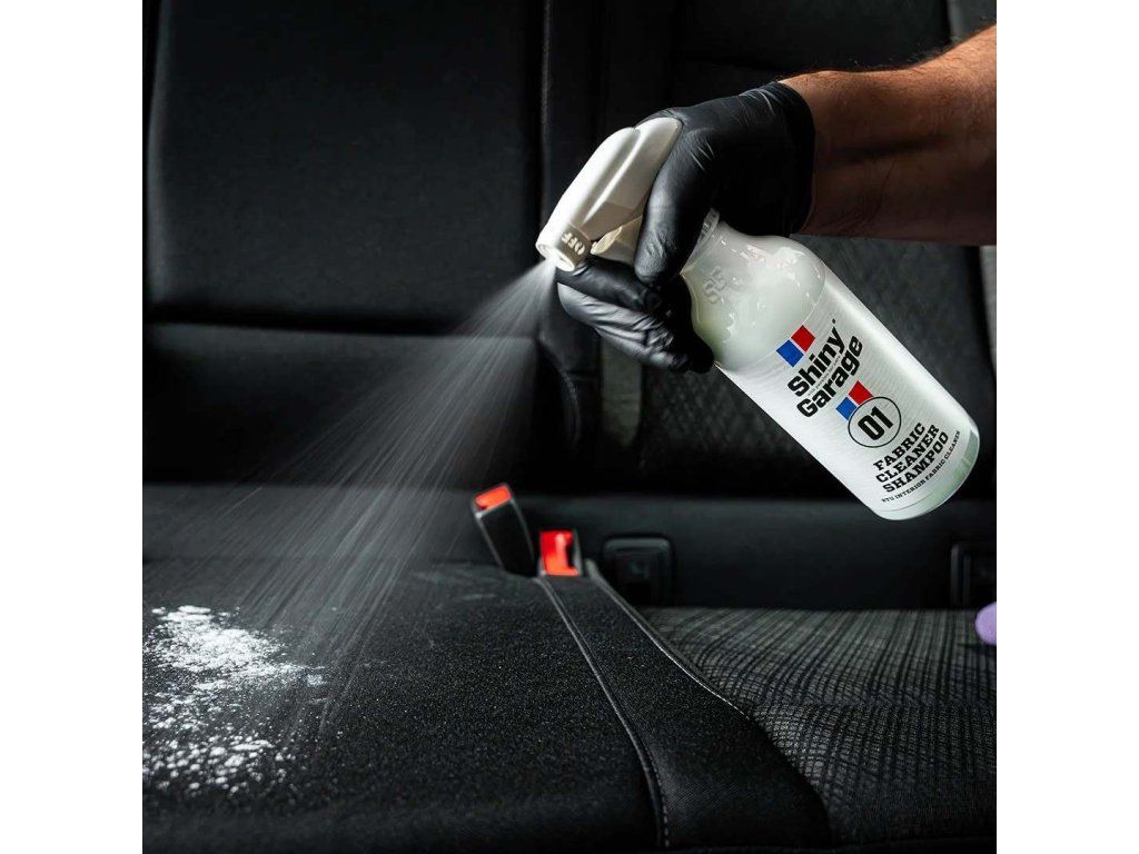 Shiny Garage Fabric Cleaner Shampoo je specializovaný přípravek na suché čištění textilního čalounění v interiéru auta. Je ideální pro citlivé povrchy, které špatně snášejí nadměrnou vlhkost, jako jsou stropnice, dveřní panely, sloupky, autosedačky a další látkové části interiéru.